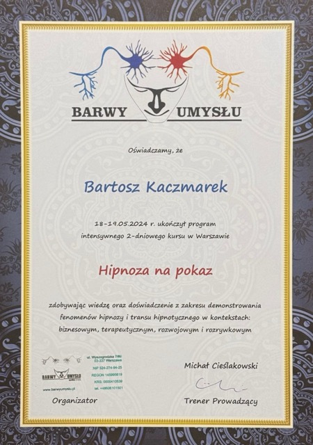 Nieustanny rozwój to fundament mojej pracy. Każdego roku inwestuję czas i energię w liczne szkolenia oraz kursy certyfikowane, aby być na bieżąco z najnowszymi trendami, metodami i narzędziami w mojej dziedzinie. Dzięki temu mogę oferować rozwiązania, które wyróżniają się skutecznością i jakością, a moi klienci zyskują pewność, że korzystają ze wsparcia specjalisty stale podnoszącego swoje kompetencje. Certyfikaty, które tu prezentuję, to nie tylko dokumenty – to dowód mojego zaangażowania, profesjonalizmu i dążenia do tego, aby zawsze zapewniać usługi na najwyższym poziomie.